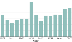 Scientists using NASA satellite data have found that clearing for mechanized cropland has recently become a significant force in Brazilian Amazon deforestation. This change in land use may alter the region's climate and the land's ability to absorb carbon dioxide. Researchers found that in 2003, the peak year of deforestation, more than 20 percent of the Mato Grosso state's forests were converted to cropland. This finding suggests that the recent cropland expansion in the region is contributing to further deforestation. In 2005, soybean prices fell by more than 25 percent and some areas of Mato Grosso showed a decrease in large deforestation events, although the central agricultural zone continued to clear forests. But, deforestation rates could return to the high levels seen in 2003 as soybean and other crop prices begin to rebound in international markets. Brazil has become a leading worldwide producer of grains including soybean, which accounts for 5% of the nation's exports.[50] This new driver of forest loss suggests that the rise and fall of prices for other crops, beef and timber may also have a significant impact on future land use in the region, according to the study.[51]