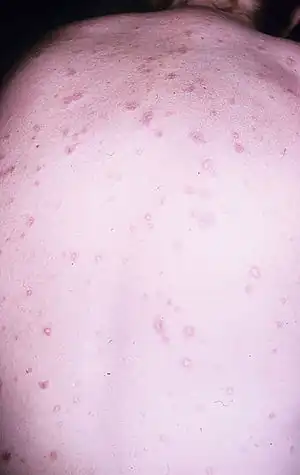 - ↑ Katz, Sara K.; Mudd, Leslie J.; Roenigk, Henry H. (1997). "Malignant atrophic papulosis (Degos' disease) involving three generations of a family". Journal of the American Academy of Dermatology. 37 (3): 480–484. doi:10.1016/s0190-9622(97)70151-8. PMID 9308565.