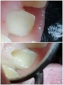 - ↑ Moncada, G; Martin J; Fernandez E; Hempel MC; Mjor IA; Gordan VV (2009). "Sealing, refurbishment and repair of Class I and Class II defective restorations: a three-year clinical trial". J Am Dent Assoc. 140 (4): 425–32. doi:10.14219/jada.archive.2009.0191. PMID 19339531.