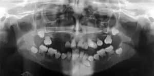 With various options available to dentists, the treatment of this condition can still be difficult. Endodontic treatment is not advised for teeth with complete obliteration of root canals and pulp chambers.[3] An alternative treatment for teeth with periapical abscesses and pulpal necrosis is dental extraction. Retrograde fillings and periapical surgery is a treatment option for teeth with longer roots, as well as orthodontic treatment. However, orthodontic treatment can lead to even more resorption of the roots, which could lead to further tooth mobility and premature exfoliation.[3] Another proposed treatment, for successful oral rehabilitation, is to extract all teeth, curette any cysts and provide the patient with a complete denture. A combination of bone grafting and a sinus lift technique can also be successful to accomplish implant placement.[3]
