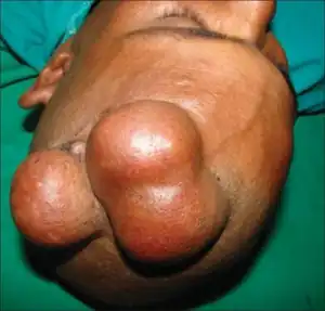 Multiple cylindromas may grow together in a "hat-like" configuration, sometimes referred to as a turban tumor.[3] Cylindromas are uncommon dysplasias of skin appendages.[4]
