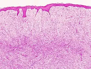 | Histopathological image of dermatofibrosarcoma protuberans. Local recurrence long after the first excision. H&E stain | |