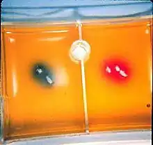 Dermatophyte test medium (DTM) is a specialized agar used in medical mycology.[1][2] It is based on Sabouraud's dextrose agar with added cycloheximide to inhibit saprotrophic growth, antibiotic to inhibit bacterial growth, and phenol red a pH indicator. The pH indicator is useful in distinguishing a dermatophyte fungus, which utilizes nitrogenous material for preferred metabolism, producing alkaline by-products, imparting a red color change to the medium. Typical saprotrophic fungi utilize carbohydrates in the medium producing acidic by-products and no red color change.