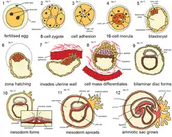 - Implantation to gastrulation - The three germ layers are formed and the cells start migrating out to initiate organogenesis. This is most sensitive stage for alcohol toxicity.[5]