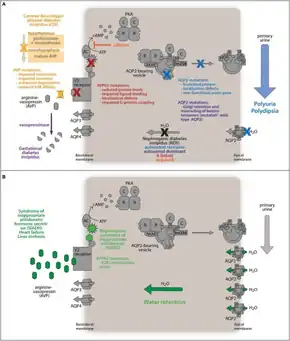 - ↑ Fujiwara TM, Bichet DG (2005). "Molecular Biology of Hereditary Diabetes Insipidus". Journal of the American Society of Nephrology. 16 (10): 2836–2846. doi:10.1681/ASN.2005040371. PMID 16093448.