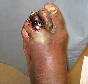 | Gas gangrene due to diabetes | |