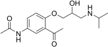 - ↑ Basil B, Jordan R (May 1982). "Pharmacological properties of diacetolol (M & B 16,942), a major metabolite of acebutolol". European Journal of Pharmacology. 80 (1): 47–56. doi:10.1016/0014-2999(82)90176-5. PMID 6124437.