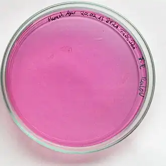 The urease agar slant is used to measure an organism's ability to produce urease, an enzyme capable to digesting urea in carbon dioxide and ammonia through hydrolysis. Because ammonia is alkaline, the media contains phenol red, an indicator that changes from orange to pink when a pH increases above 8.1. When ammonia is increased to high enough concentrations, the media will change to a pink color, indicating the presence of urease production.[44]
