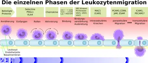 - ↑ Beekhuizen, Henry; Furth, Ralph van (1998). "Diapedesis". Encyclopedia of Immunology. pp. 757–760. doi:10.1006/rwei.1999.0200. ISBN 978-0-12-226765-9.