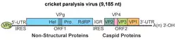 | Cripavirus | Icosahedral | Pseudo T=3 | Non-enveloped | Linear | Monopartite |