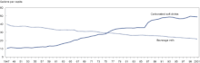 New agricultural technologies have led to an overall reduction in the cost of food relative to household income, especially in high-income countries. In his popular book, "The Omnivore's Dilemma," the journalist Michael Pollan linked the subsidies offered to farmers of corn, soy, wheat, and rice through the U.S. farm bill to over-consumption of calories derived from these crops and to rising obesity rates.[40] While increased consumption of foods derived from these commodities is correlated with an increase in BMI (at the population level), no current research supports a causal relationship between farm subsidies and obesity.[41] From a policy perspective, the cost of sugar would actually decrease in the US if the commodity support programs in the farm bill were removed, largely due to the tariffs in the farm bill that restrict the importation of lower-cost sugar available on the global market.[42]