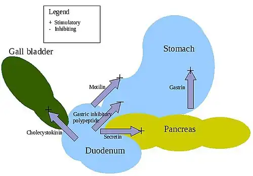 - ↑ Hall JE (2011). "General Principles of Gastrointestinal Function". Guyton and Hal Textbook of Medical Physiology (12th ed.). Saunders Elsevier. p. 755. ISBN 978-1-4160-4574-8.