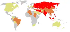 - ↑ 4.0 4.1 GBD 2015 Mortality and Causes of Death, Collaborators. (8 October 2016). "Global, regional, and national life expectancy, all-cause mortality, and cause-specific mortality for 249 causes of death, 1980–2015: a systematic analysis for the Global Burden of Disease Study 2015". Lancet. 388 (10053): 1459–1544. doi:10.1016/s0140-6736(16)31012-1. PMC 5388903. PMID 27733281.