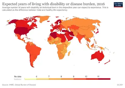 89. Theo Vos; et al. (GBD 2016 Disease and Injury Incidence and Prevalence Collaborators) (2017). "Global, regional, and national incidence, prevalence, and years lived with disability for 328 diseases and injuries for 195 countries, 1990–2016: a systematic analysis for the Global Burden of Disease Study 2016". The Lancet. 390 (10100): 1211–1259. doi:10.1016/s0140-6736(17)32154-2. ISSN 0140-6736. PMC 5605509. PMID 28919117.