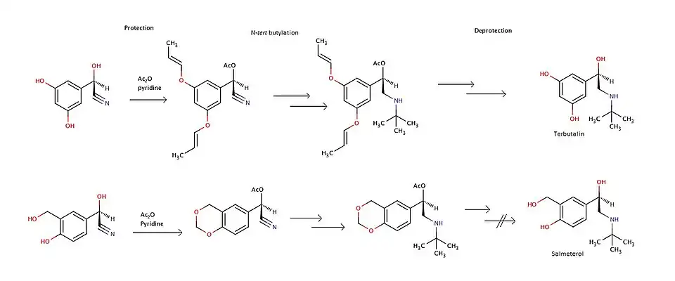 - ↑ Effenberger, Franz; Jäger, Jürgen (1997). "Synthesis of the Adrenergic Bronchodilators (R)-Terbutaline and (R)-Salbutamol from (R)-Cyanohydrins". J. Org. Chem. 62 (12): 3867–3873. doi:10.1021/jo970032d.