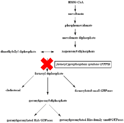 Bisphosphonates with a more lipophilic character have been developed and have shown potential as a tumor suppressant. They operate by a slightly different mechanism in which they not only inhibit the key enzyme farnesyl pyrophosphate synthase (FPPS) of the mevalonate pathway but also geranylgeranyl pyrophosphate synthase (GGPS), an enzyme also located in the mevalonate pathway. They do not have the same affinity for the bone minerals.[4]