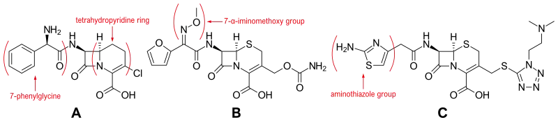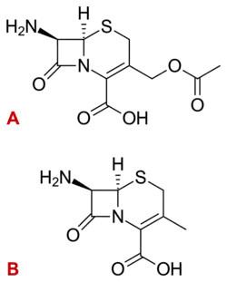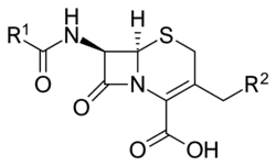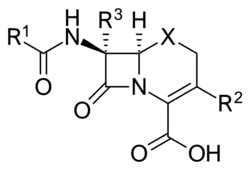 - ↑ Perez-Inestrosa, E; Suau, R; Montañez, MI; Rodriguez, R; Mayorga, C; Torres, MJ; Blanca, M (August 2005). "Cephalosporin chemical reactivity and its immunological implications". Current Opinion in Allergy and Clinical Immunology. 5 (4): 323–30. doi:10.1097/01.all.0000173788.73401.69. PMID 15985814. S2CID 13346333.