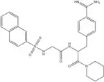Nα-(2-naphthyl-sulphonyl-glycyl)-DL-p-amidinophenylalanyl-piperidine (NAPAP) binds thrombin in the S1, S2 and S4 pockets. The amidine group on NAPAP forms a bidentate salt bridge with Asp deep in the S1 pocket, the piperidine group takes the role of proline residue and binds in the S2 pocket, and the naphthyl rings of the molecule forms a hydrophobic interaction with Trp in the S4 pocket. Pharmaceutical companies have used the structural knowledge of NAPAP to develop DTIs. Dabigatran, like NAPAP binds to S1, S2 and S4 pockets. Benzamidine group on the dabigatran structure binds deep in the S1 pocket, the methylbenzimidazole fits nicely in the hydrophobic S2 pocket and the Ile and Leu at the bottom of the S4 pocket binds to the aromatic group of dabigatran.[9]