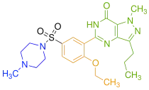 Drugs that inhibit PDE5, sildenafil, tadalafil and vardenafil, have been used as treatment for erectile dysfunction.[16] These inhibitors increase the cGMP, smooth muscle relaxation and consequently cause penis erection[9] during sexual stimulation.[17]