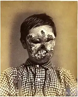 Disfigurement is the state of having one's appearance deeply and persistently harmed medically, such as from a disease, birth defect, or wound. General societal attitudes towards disfigurement have varied greatly across cultures and over time, with cultures possessing strong social stigma against it often causing psychological distress to disfigured individuals. Alternatively, many societies have regarded some forms of disfigurement in a medical, scientific context where someone having ill will against the disfigured is viewed as anathema. In various religious and spiritual contexts, disfigurement has been variously described as being a punishment from the divine for sin (such as Yahweh's defacement of Cain for Abel's murder in Judaism), as being (such as Paul of the New Testament's arguments about Christ's sufferings) caused by supernatural forces of hate and evil against the good and just, which will be later atoned for, or as being without explanation per se with people just having to endure.