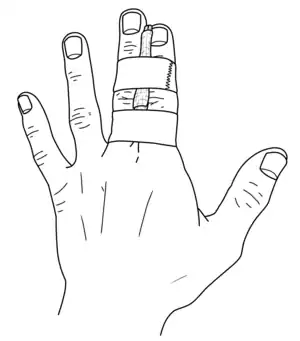 - ↑ 2.0 2.1 2.2 2.3 2.4 2.5 2.6 2.7 2.8 Taqi, M; Collins, A (January 2024). "Finger Dislocation". StatPearls. PMID 31855352.