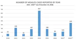 - ↑ "Measles Cases and Outbreaks". Centers for Disease Control and Prevention. February 4, 2022. Archived from the original on February 9, 2022. Retrieved February 8, 2022.