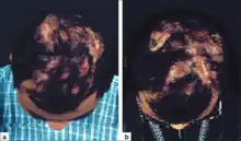 Dissecting cellulitis of the scalp is a longterm inflammatory condition of the scalp that results in pustules, deep spongy bumps and patchy hair loss.[1] It typically begins at the back of the head.[2]