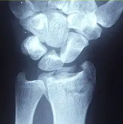 {{cite book}}: CS1 maint: location missing publisher (link) - ↑ Lameijer, C. M.; Ten Duis, H. J.; Dusseldorp, I. van; Dijkstra, P. U.; van der Sluis, C. K. (November 2017). "Prevalence of posttraumatic arthritis and the association with outcome measures following distal radius fractures in non-osteoporotic patients: a systematic review". Archives of Orthopaedic and Trauma Surgery. 137 (11): 1499–1513. doi:10.1007/s00402-017-2765-0. ISSN 1434-3916. PMC 5644687. PMID 28770349.