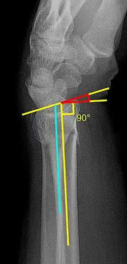 - ↑ Medoff, RJ (August 2005). "Essential radiographic evaluation for distal radius fractures". Hand Clinics. 21 (3): 279–288. doi:10.1016/j.hcl.2005.02.008. PMID 16039439.