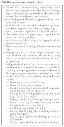 - ↑ American Veterinary Medical Association Task Force on Canine Aggression and Human-Canine Interactions. A community approach to dog bite prevention. J Am Vet Med Assoc. 2001; 218: 1732–1749