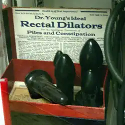 Dr. Young's Ideal Rectal Dilators were medical devices sold in the United States from the late nineteenth century until at least the 1940s, part of the burgeoning market for patent and proprietary medicines and devices at the time.[1] They came in sets of four "torpedolike" [2] hard rubber[3] (later, plastic) instruments varying in diameter from 1⁄2 inch (12.7 mm) to 1 inch (25.4 mm) and in length from 3 to 4 inches (76.2 to 101.6 mm),[4] and according to a retrospective article in The American Journal of Gastroenterology, were no different from modern rectal dilators.[5]