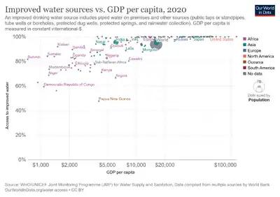 Drinking water quality in the United States is generally safe. In 2016, over 90 percent of the nation's community water systems were in compliance with all published U.S. Environmental Protection Agency (EPA) standards.[1] Over 286 million Americans get their tap water from a community water system. Eight percent of the community water systems—large municipal water systems—provide water to 82 percent of the US population.[2]