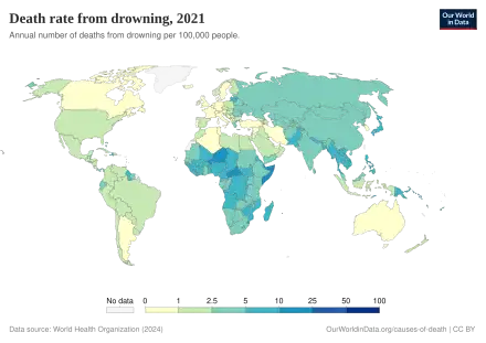 - ↑ 6.0 6.1 Preventing drowning: an implementation guide (PDF). WHO. 2015. p. 2. ISBN 978-92-4-151193-3. Archived (PDF) from the original on 28 July 2018. Retrieved 9 August 2018.