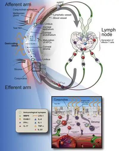 - ↑ 6.0 6.1 Messmer, EM (30 January 2015). "The pathophysiology, diagnosis, and treatment of dry eye disease". Deutsches Ärzteblatt International. 112 (5): 71–81, quiz 82. doi:10.3238/arztebl.2015.0071. PMC 4335585. PMID 25686388.