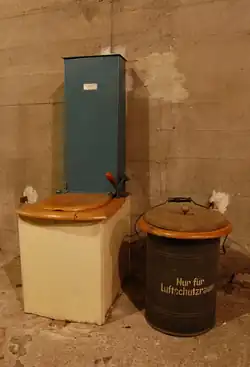 A dry toilet (or non-flush toilet, no flush toilet or toilet without a flush) is a toilet which, unlike a flush toilet, does not use flush water.[1] Dry toilets do not use water to move excreta along or block odors.[2] They do not produce sewage, and are not connected to a sewer system or septic tank. Instead, excreta falls through a drop hole.[1]