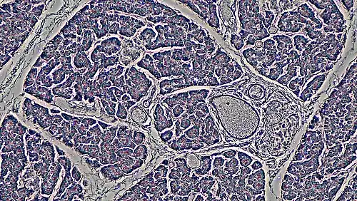 - ↑ "cross section: human pancreas". Berkshire Community College Bioscience Image Library. 2019-04-18. Retrieved 2022-12-07.