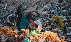 Different terms are used to refer to different forms of this activity. For picking materials from the curbside trash collection, expressions such as curb shopping, trash picking or street scavenging are sometimes used.[5] In the UK, if someone is primarily seeking recyclable metal, they are scrapping, and if they are picking the leftover food from farming left in the fields, they are gleaning.[6] In such instances, unpackaged and hence lower quality food waste is commonly termed scree.