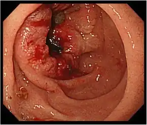 | Endoscopic image of adenocarcinoma of duodenum seen in the post-bulbar duodenum | |