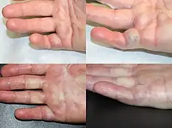 In extreme cases, amputation of fingers may be needed for severe or recurrent cases or after surgical complications.[29]