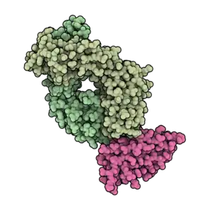 ![]() Antigen-binding fragment of durvalumab (pale green) in complex with PD-L1 (pink). PDB: 5X8M. | |