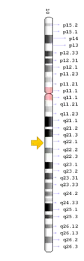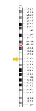The TCIRG1 gene is present in chromosome locus 11q13, which encodes for the a3 subunit of vacuolar H+ ATPase (V-ATPase) that is unique to osteoclasts.[12] The a3 subunit is responsible in anchoring the vacuolar proton pump to the ruffled membrane of osteoclasts.[9] The V-ATPase is important in mediating the transport of hydrogen ions into the resorption lacunae, which is a pit on the bone surface enclosed by the osteoclast for bone resorption. The accumulation of ions in the lacuna facilitates the decomposition of hydroxyapatite crystals by creating an acidic environment, resulting in bone resorption.[12]