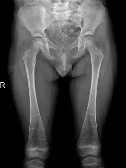 - ↑ Nasman A. "Erlenmeyer flask deformity | Radiology Case | Radiopaedia.org". Radiopaedia. Retrieved 2020-04-19.