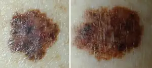 | Dysplastic nevus (left) and melanoma (right) | |