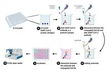 - ↑ Portilho, AI; Gimenes Lima, G; De Gaspari, E (9 March 2022). "Enzyme-Linked Immunosorbent Assay: An Adaptable Methodology to Study SARS-CoV-2 Humoral and Cellular Immune Responses". Journal of Clinical Medicine. 11 (6): 1503. doi:10.3390/jcm11061503. PMC 8948777. PMID 35329828.