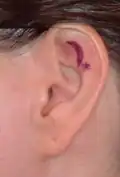 - ↑ Watson, D (2002). "Torn earlobe repair". Otolaryngologic Clinics of North America. 35 (1): 187–205, vii–viii. doi:10.1016/s0030-6665(03)00102-6. PMID 11781215.