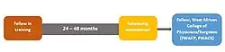 The second stage is the fellowship training. This spans a period of 24 - 48 months, depending on the specialty. On successful completion, the doctor is awarded a fellowship of the West African College of Physicians or Surgeons and exits the program to practise as a specialist doctor.