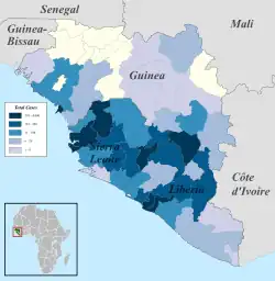 Within 2 days of 12 September 2014, there were 20 lab-confirmed cases discovered in Freetown, Sierra Leone.[39] One issue was that residents were leaving dead bodies in the street.[39] By 6 September 2014, there were 60 cases of Ebola in Freetown, out of about 1100 nationwide at this time.[40] However, not everyone was bringing cases to doctors, and they were not always being treated.[40] One doctor said the Freetown health system was not functioning, and during this time, respected Freetown Doctor Olivette Buck fell ill and died from Ebola by 14 September 2014.[40][41] The population of Freetown in 2011 was 941,000.[42]