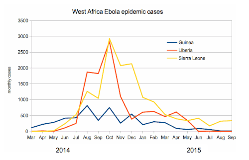 Monthly aggregate Ebola cases in the Western Africa epidemic 2014–15