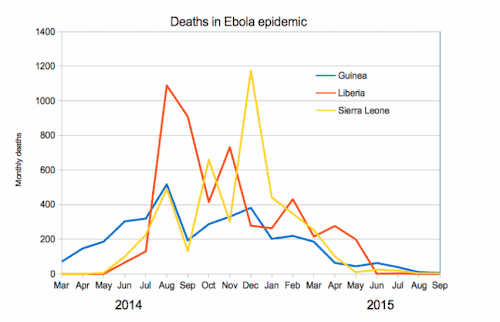 Monthly aggregate Ebola deaths in the Western Africa epidemic 2014–15