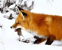Red fox with rodent